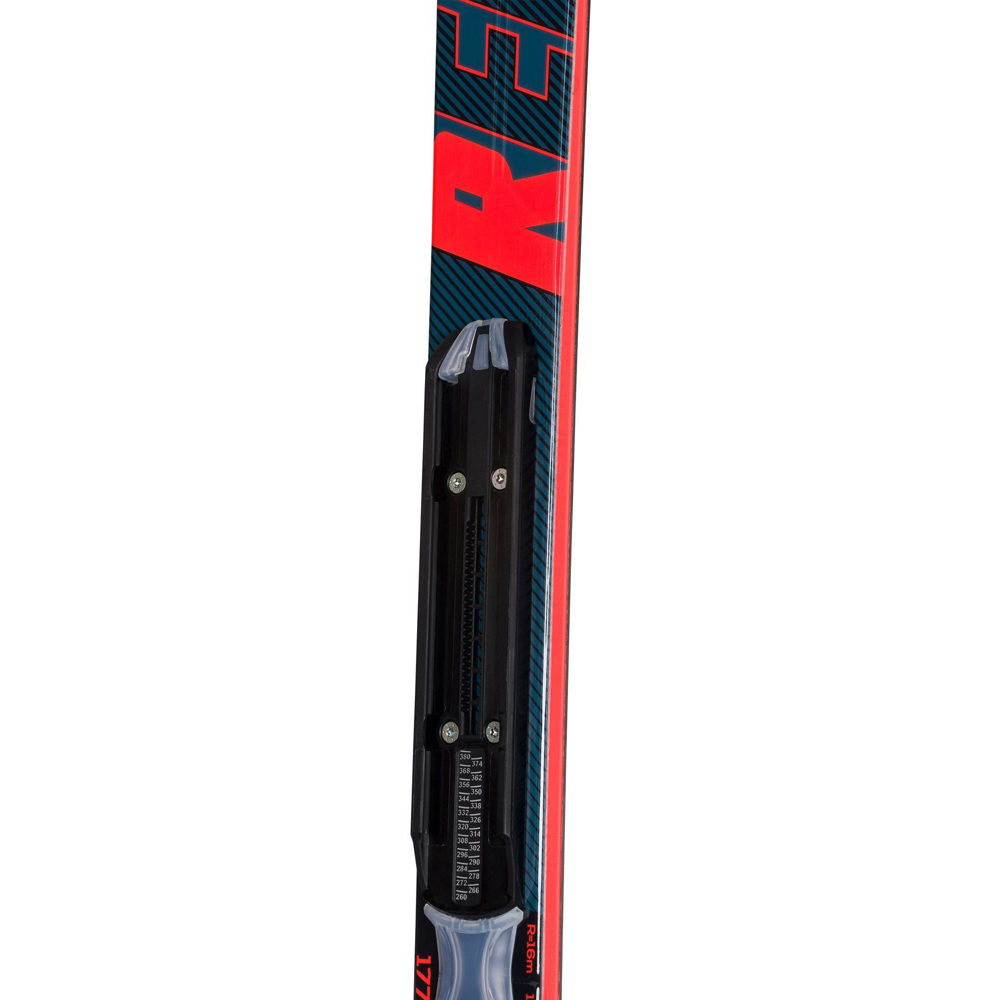 Adapted rocker at tip only. For easier pivoting on flat skis with a smooth and forgiving feel in the turns. The rise is designed so that once the ski is on its edge, the rocker section resumes contact with the snow, so then the ski works in the turn providing full-length edge contact.